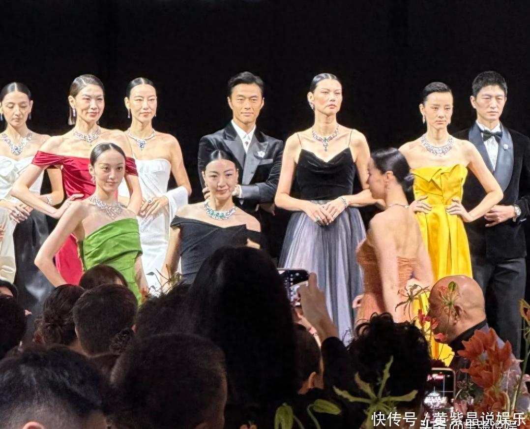 这一夜,露肩装的那英,深V领的朱珠,都输给了全裹出镜的郭晶晶 卡地亚晚宴的红毯真是女明星们的修罗场呀,11 月 8 号这场简直热闹到不行!那英穿了件白色露肩高定西装,配着满钻项链,红唇一涂气场直接拉满,干练里还带着点女人味。朱珠则选了深 V 黑色套装,大秀身材曲线,橘红色妆容衬得脸颊红红的,大波浪卷发搭着钻石耳环,性感又有氛围感,妥妥的魅力女神。 谁能想到呢,最后最吸睛的居然是郭晶晶!她居然从头包到脚,高领黑裙把锁骨都藏得严严实实,袖子盖到手腕,裙摆拖到脚面,就戴了条简单的项链和耳环,妆发也特别素净,浅棕色眉毛配豆沙色口红,头发简单盘起来,几缕碎发飘在耳边,在一群浓妆艳抹的女星里,看着就像朵清雅的茶花。